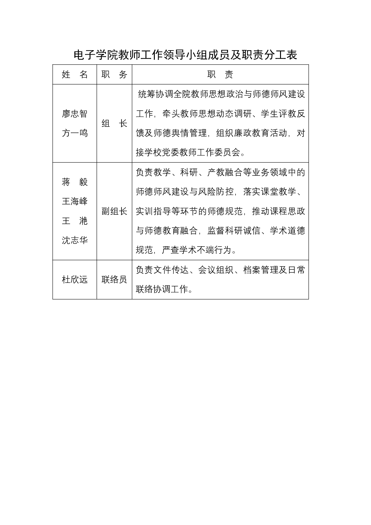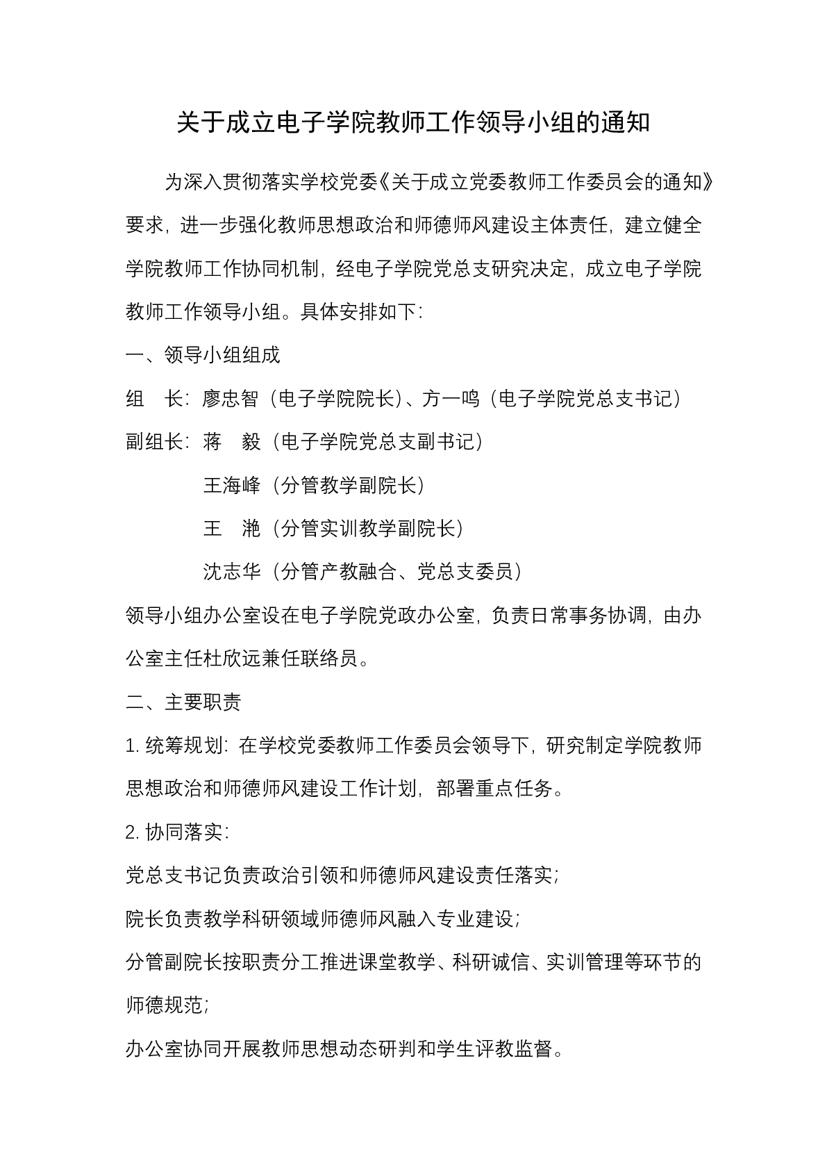 关于成立电子公司教师工作领导小组的通知
